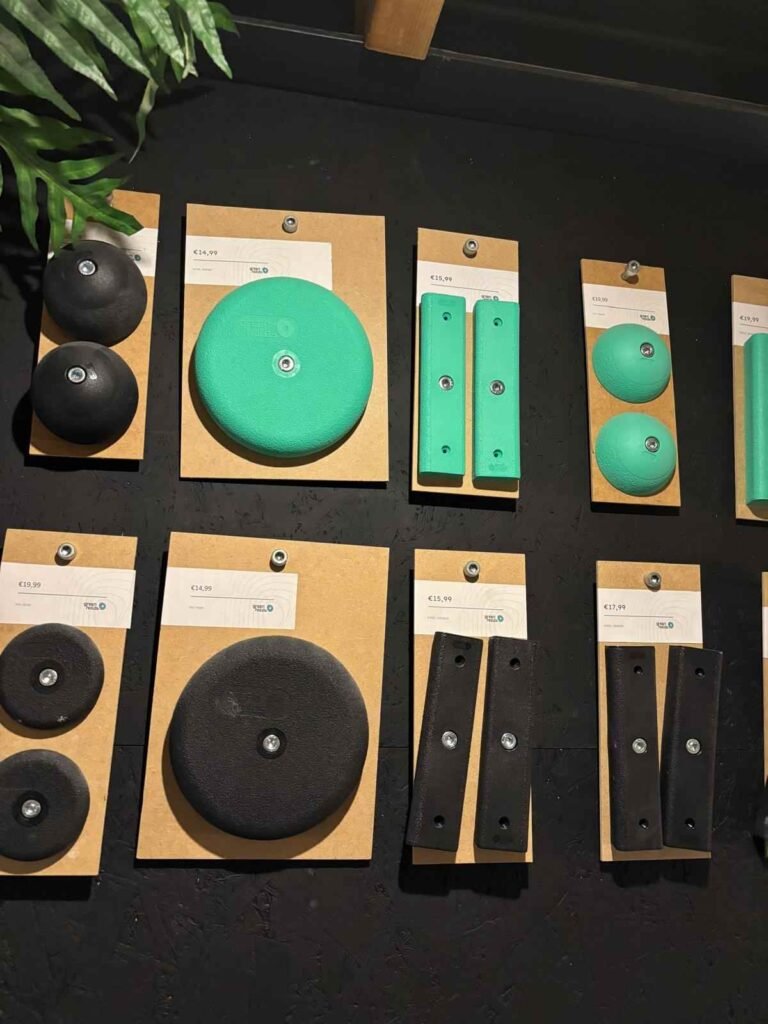 I will admit it: I am picky about holds and routes. Greenholds may not have the bold, eye-catching looks of brands like Unit or Cheeta, but the climbing experience was excellent. Greenholds also adds a thoughtful touch by providing information cards to mark sustainable routes. A small gesture that helps climbers understand the story behind the holds and the values of their gym.