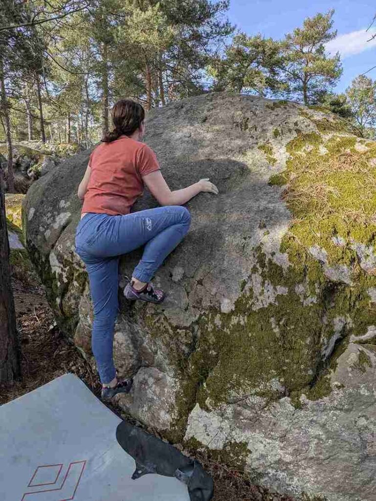 Wij trokken er een lang weekend op uit, met 2,5 dag boulderen. We begonnen in Apremont, vervolgden in Maunoury en Petit Bois, en sloten af in Rocher Saint Germain. De structuur van de rots en kleine voettreden is altijd even wennen. Binnen focus ik vaak op moeilijke boulders, maar hier genoot ik net zo van de makkelijkere routes. De gradatie is hier soms verraderlijk. Een 5A kan zomaar aanvoelen als een 6C.